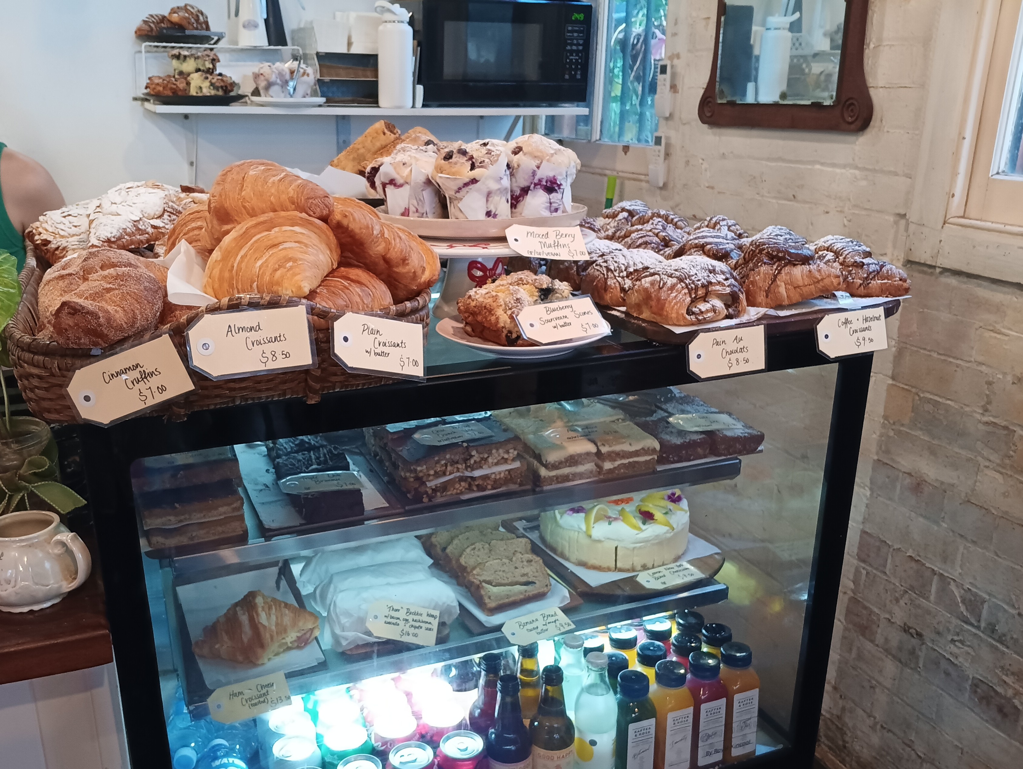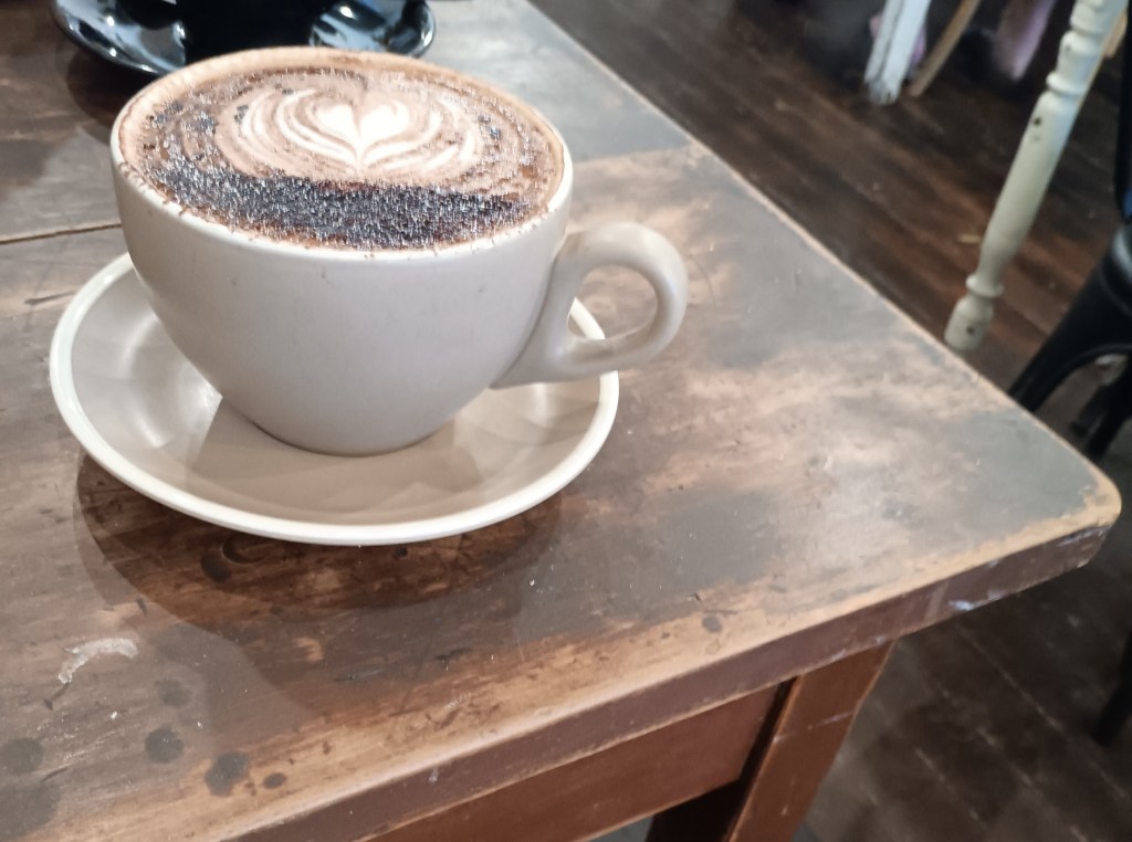 I took the 7.25am bus into town, got a (yummy) coffee-and-hazelnut croissant. Browsed the Handmade Markets (which I’d thought were on last Saturday), then sat with my cappucino, chatting with a lady who was also waiting for the library to open. Shopping after, then home (all before lunch).