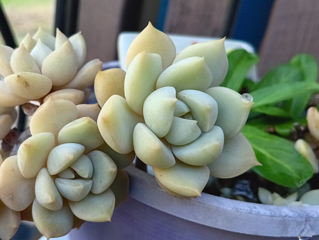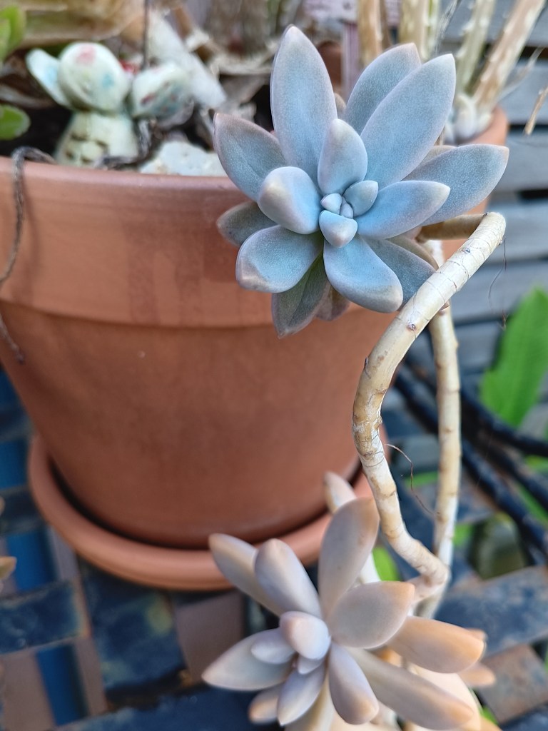 My garden gets out of hand when I’m not looking, but even then my succulents keep on growing in their own orderly way. I took time out after watering today to enjoy them.
