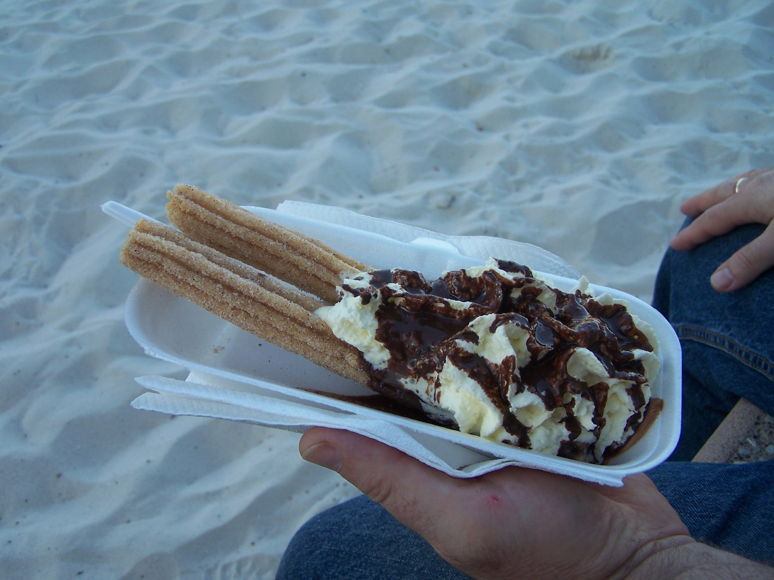 What more could you need if you have a plate of churros, with cream and chocolate sauce?