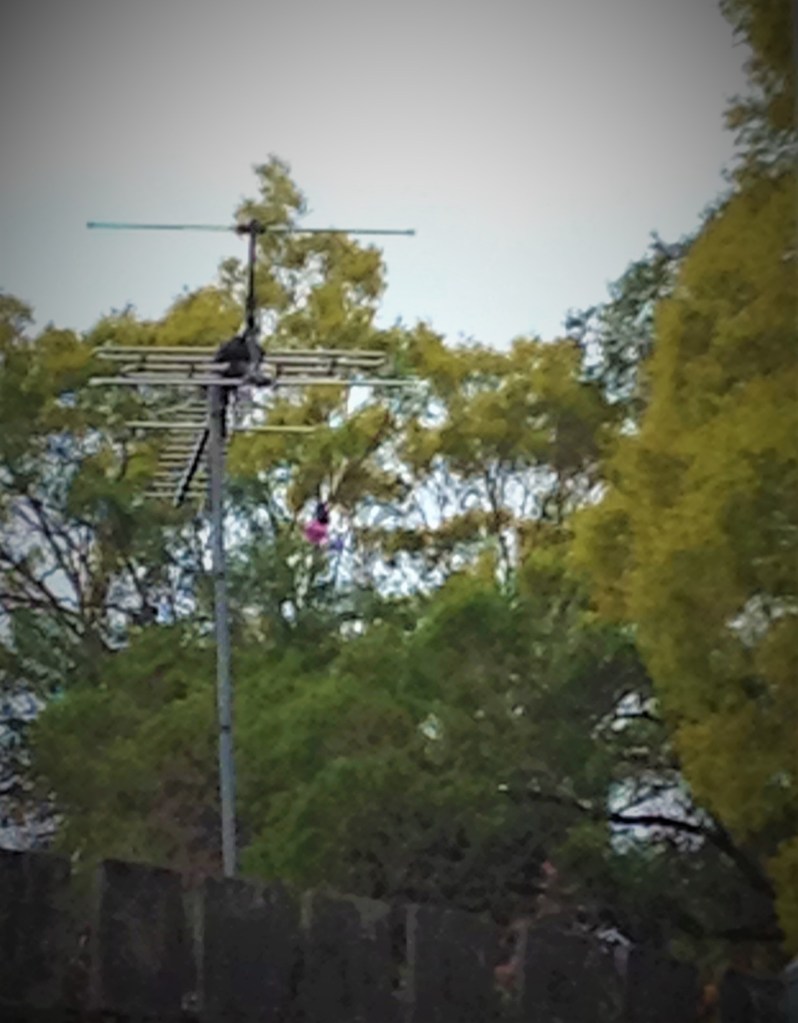 The view doesn’t change particularly, although it’s generally quiet and calming. This morning I was looking up to the top of the trees and noticed a splash of pink.
