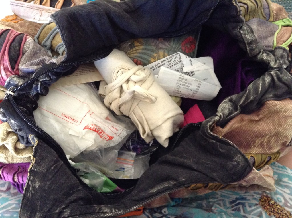 I was reading a column in the Sunday paper this morning, and got to thinking about its premise that you can tell what someone’s like by the contents of their handbag. Do you remember those articles in old women’s magazines, where celebrities emptied out their handbags to show what they carried around? I don’t seem to remember much in the way of old receipts and clutter in those…