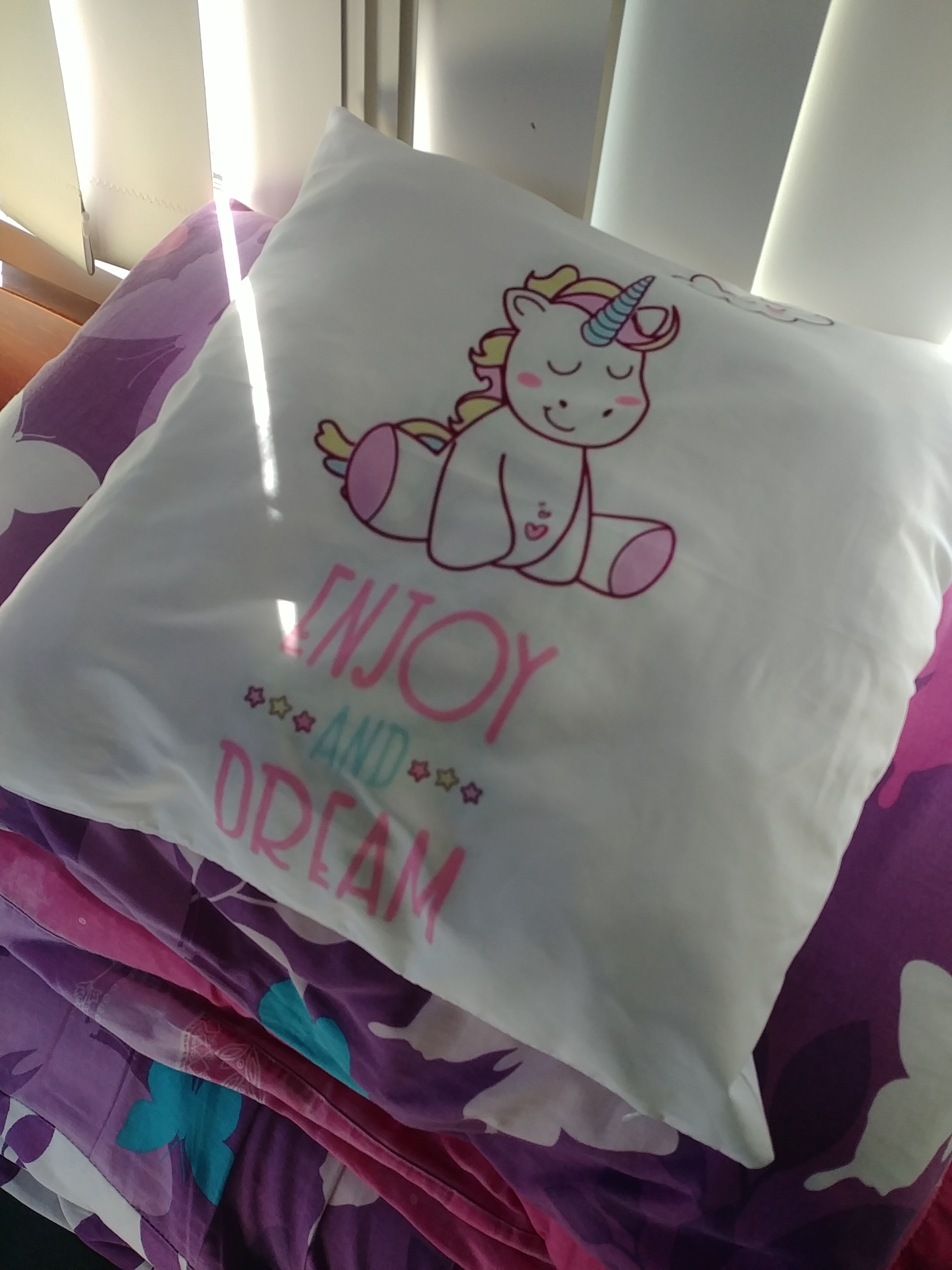 I’ve just had a lovely dinner – roast lamb and potatoes. I’ve been calming down by listening to Home Free (because that always cheers me up!) And I’ve been cuddling in to my new unicorn pillow.
