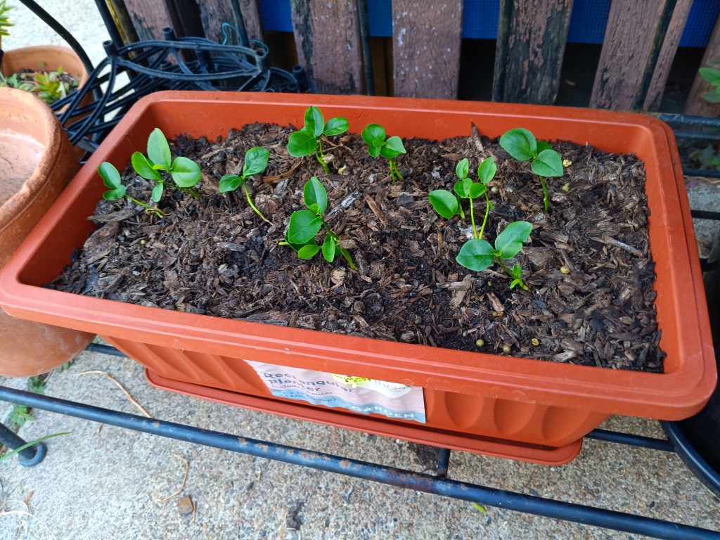 A month (?) or two (? can’t remember exactly…) in a glass of water, to help it throw out roots, and it’s obviously very happy!