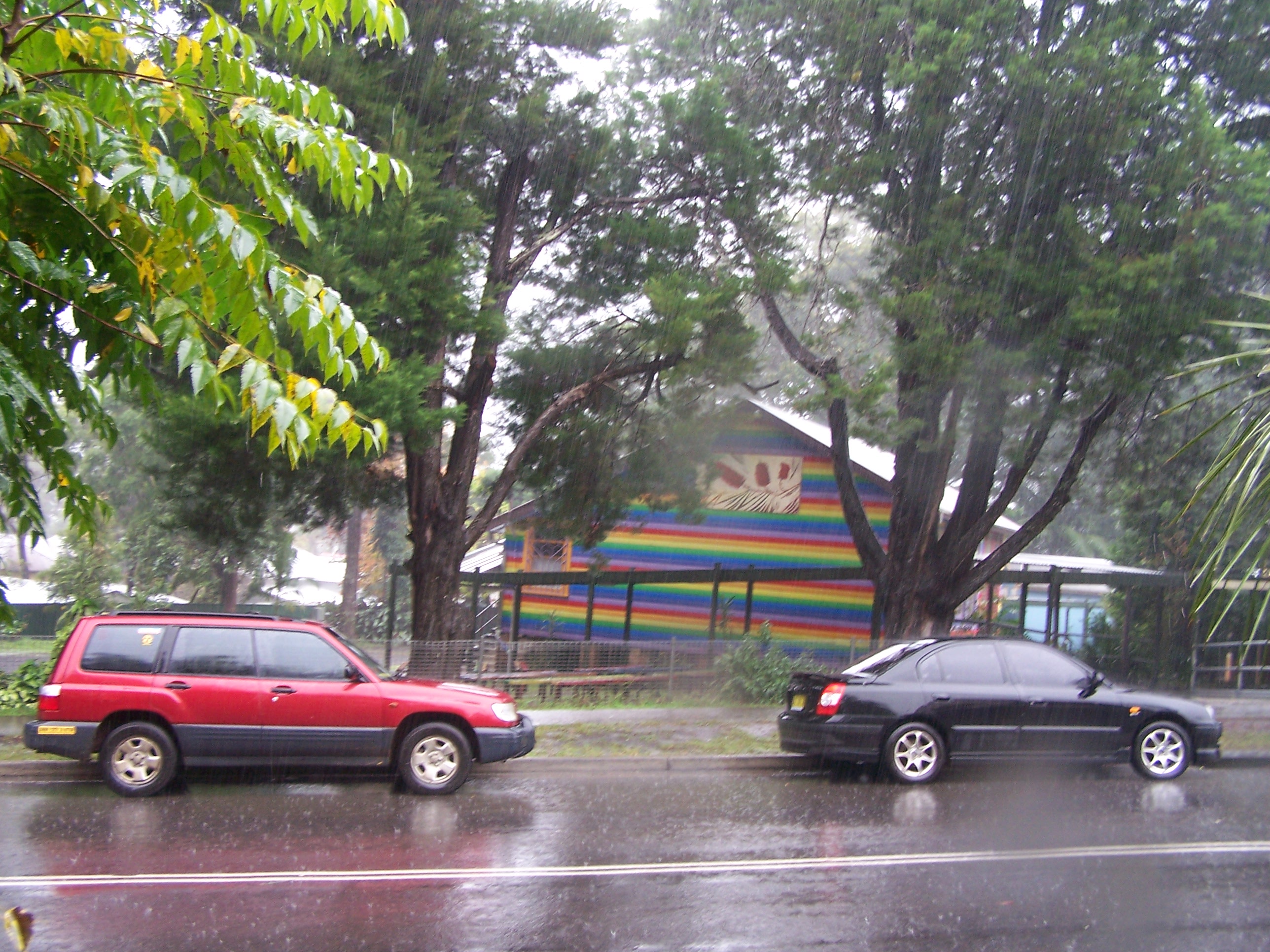 It rained heavily throughout the night, but let up enough in the morning for us to pack the car… the downpour resumed as we left Maclean…