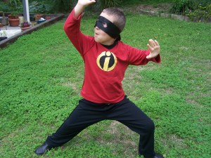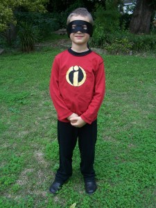 Littlest Bean went to a fancy dress party on Saturday. It was Disney themed, and he chose Dash from The Incredibles… we had to rustle up a costume that would withstand at least a bit of running around. It’s amazing what you can achieve with scraps of material, thread and a bit of glue 😀