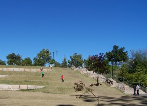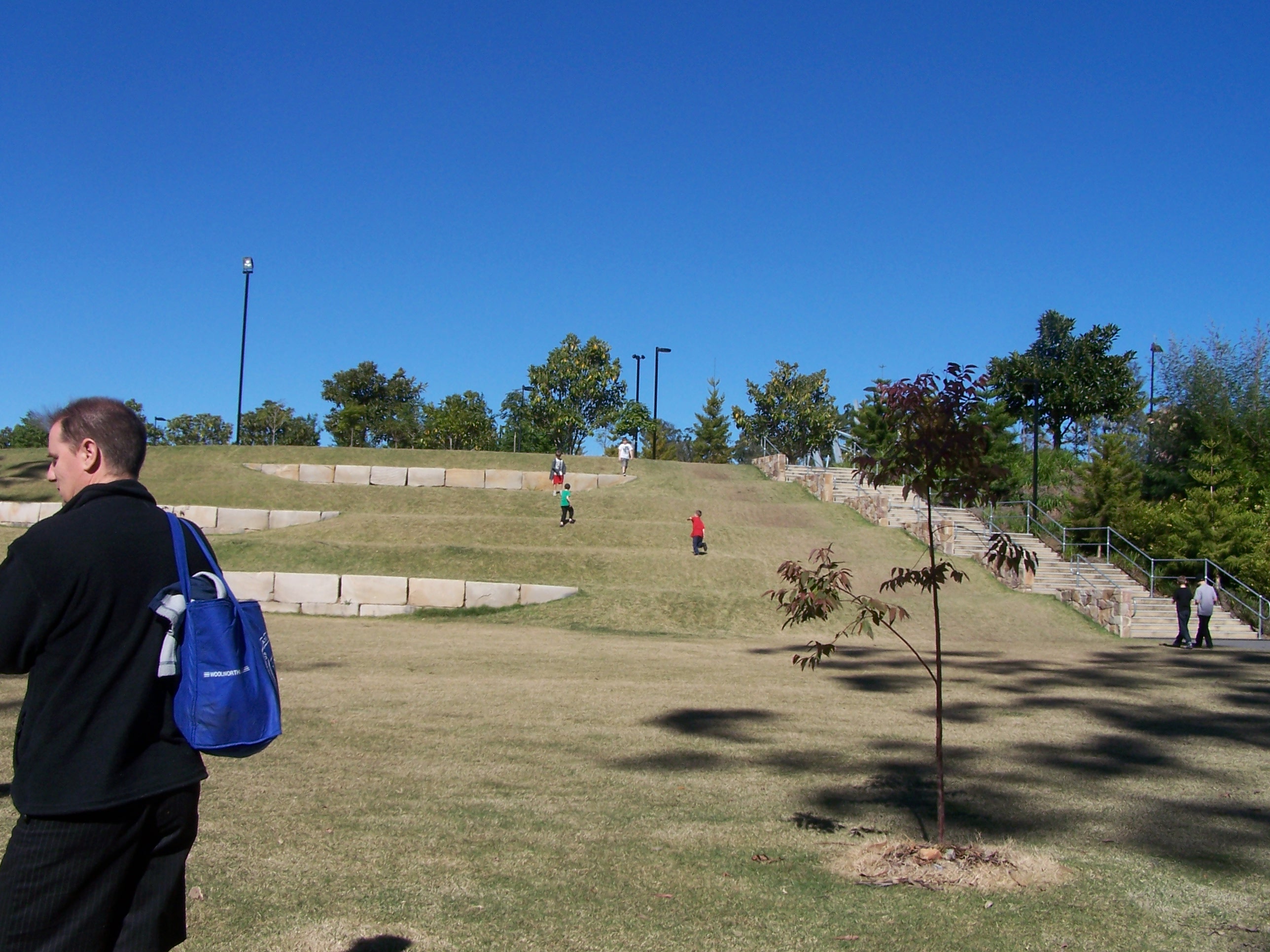 There was a grassed area further on; a sort of hill/tiered seating arrangement.. perfect for running up (and maybe rolling down?)