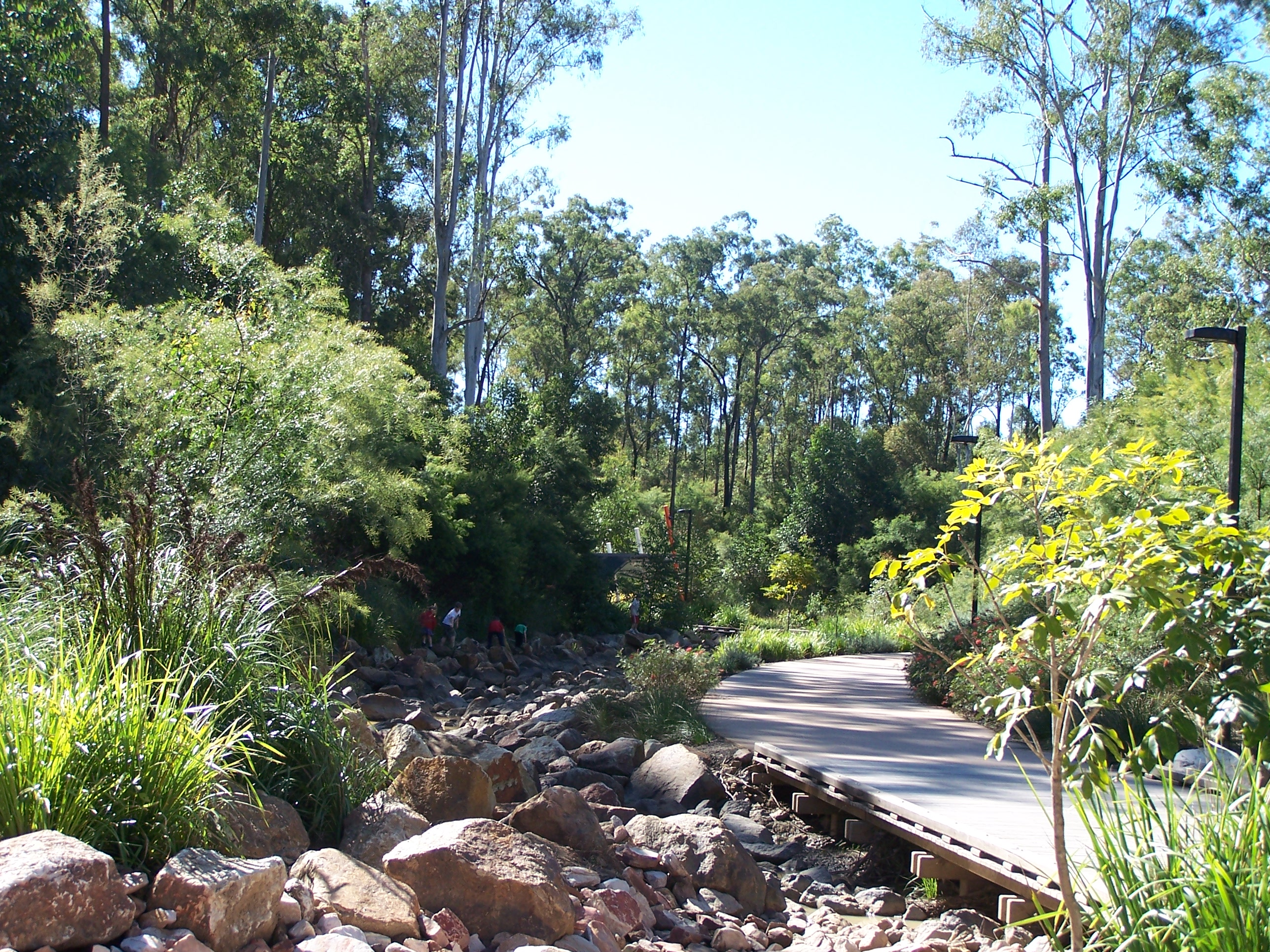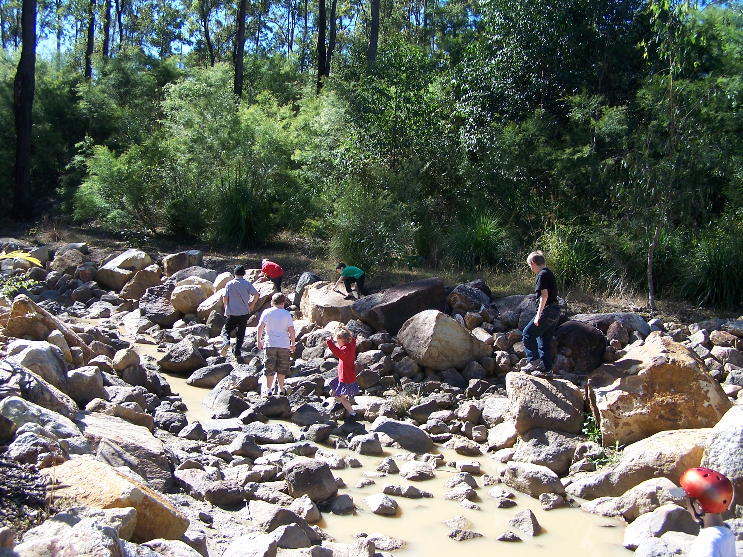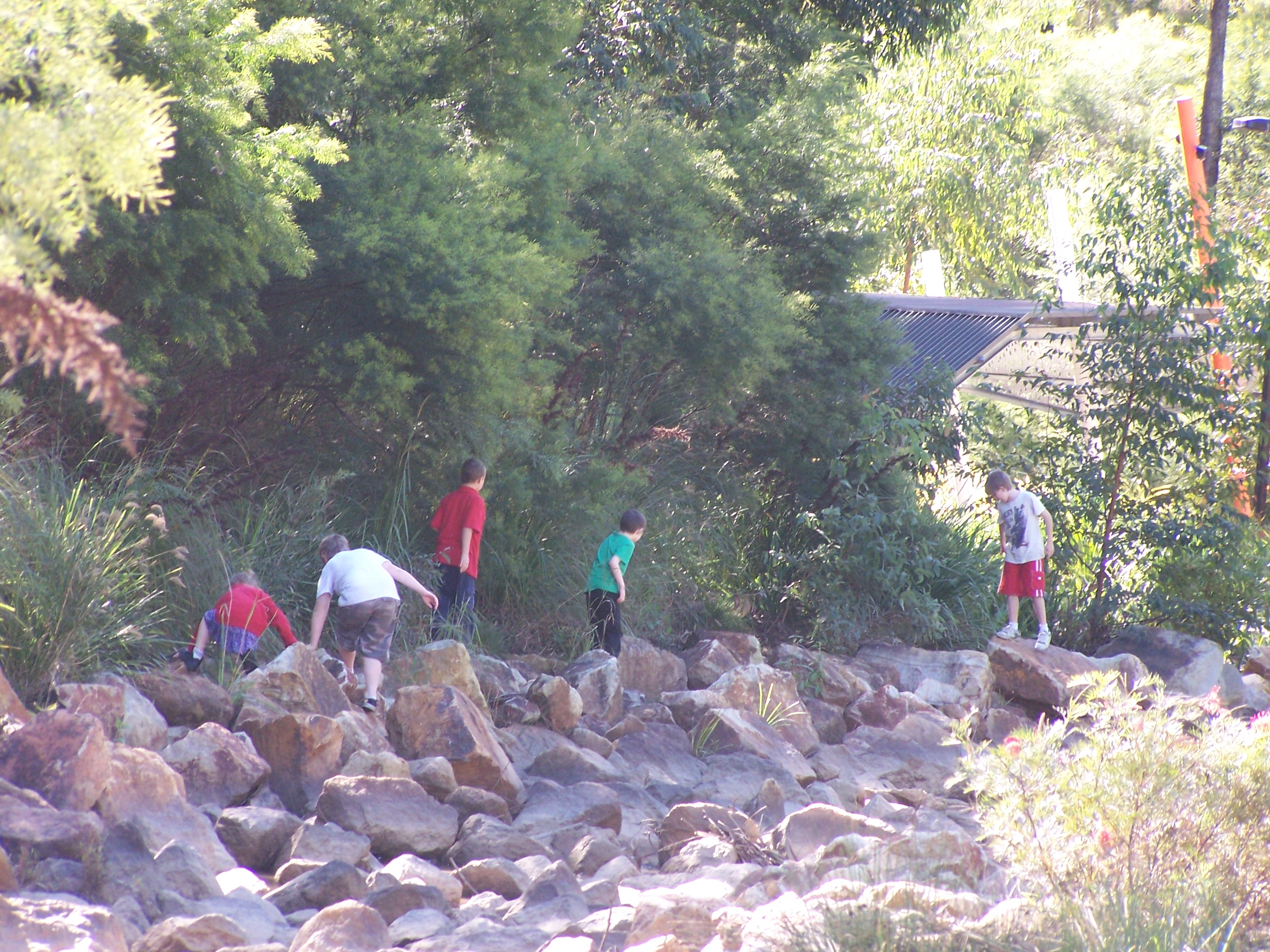 It’s a lovely place. The playground is pretty impressive, and the kids all loved the water feature… after we’d explored the waterfall and the trails we went back to the play area, where they stripped off their shirts and proceeded to get drenched… Good thing kids don’t seem to feel the cold..