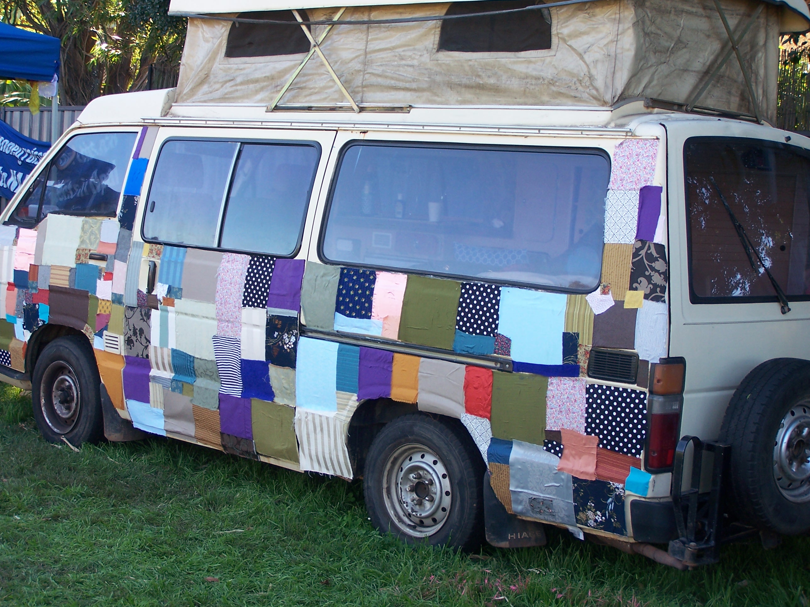 2. The wallpapered van – decorated with bits of material/wallpaper/whatever else seemed to be around…