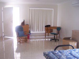 Signed up for NRAS (National Rental Affordability Scheme – an Australian Government scheme) about two- two and a half weeks ago, after looking at a property, applied on the morning after, heard back less than a week later that we got it, scrambled about for rental bond/grant/paperwork etc, moved in last Friday (9th) (with final boxes etc Monday)!