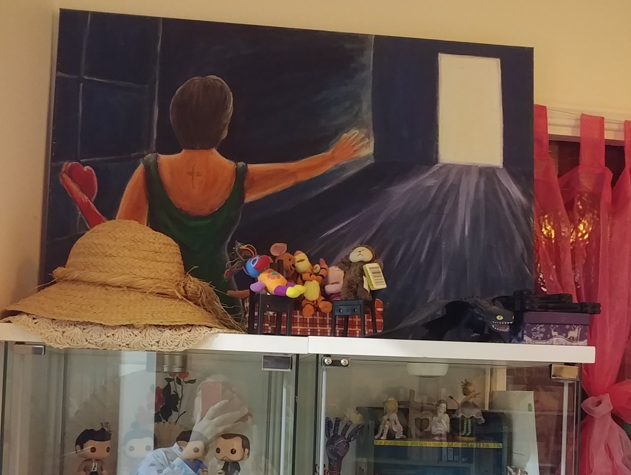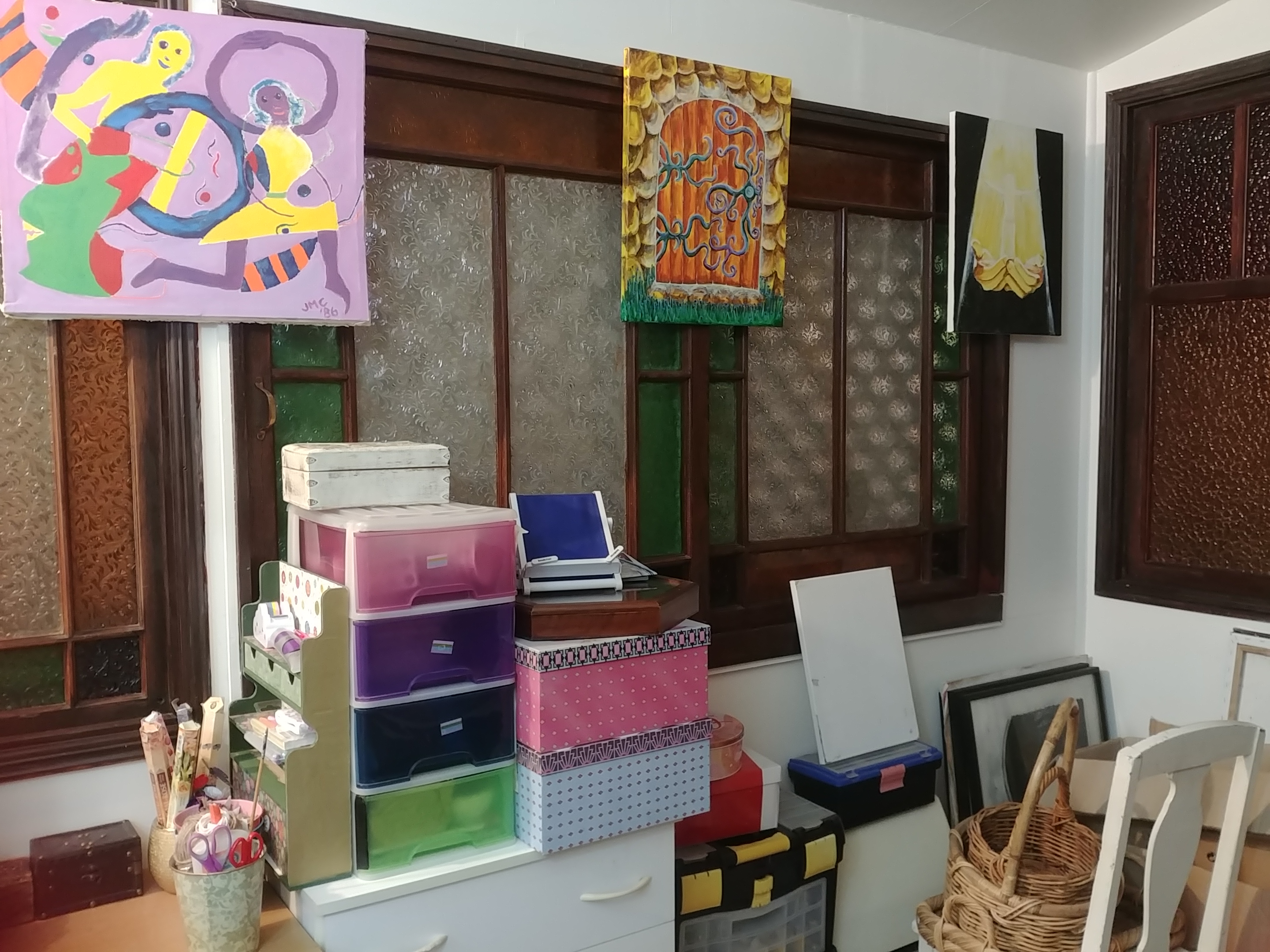 Some of the packages haven’t seen the light of day for quite a while. There are canvases that I’ve had for decades, and some that are a fair bit newer. There are various reasons why I haven’t hung them up before, but one is that they aren’t really too great, in my eyes. But – they exist. And they’re not terrible 😆 I hope to get some more work done – get some of the images out of my head and onto a canvas, or piece of paper. I have a certain fondness for my older work, even if I can still see the flaws!