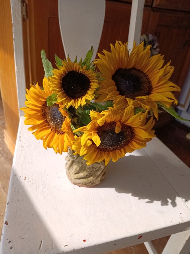 The sun has been lovely lately. Bright clear days to get the washing dry, and just enough warmth to thaw my toes in the morning! I got myself some sunflowers the other day, to bring the sunshine inside.