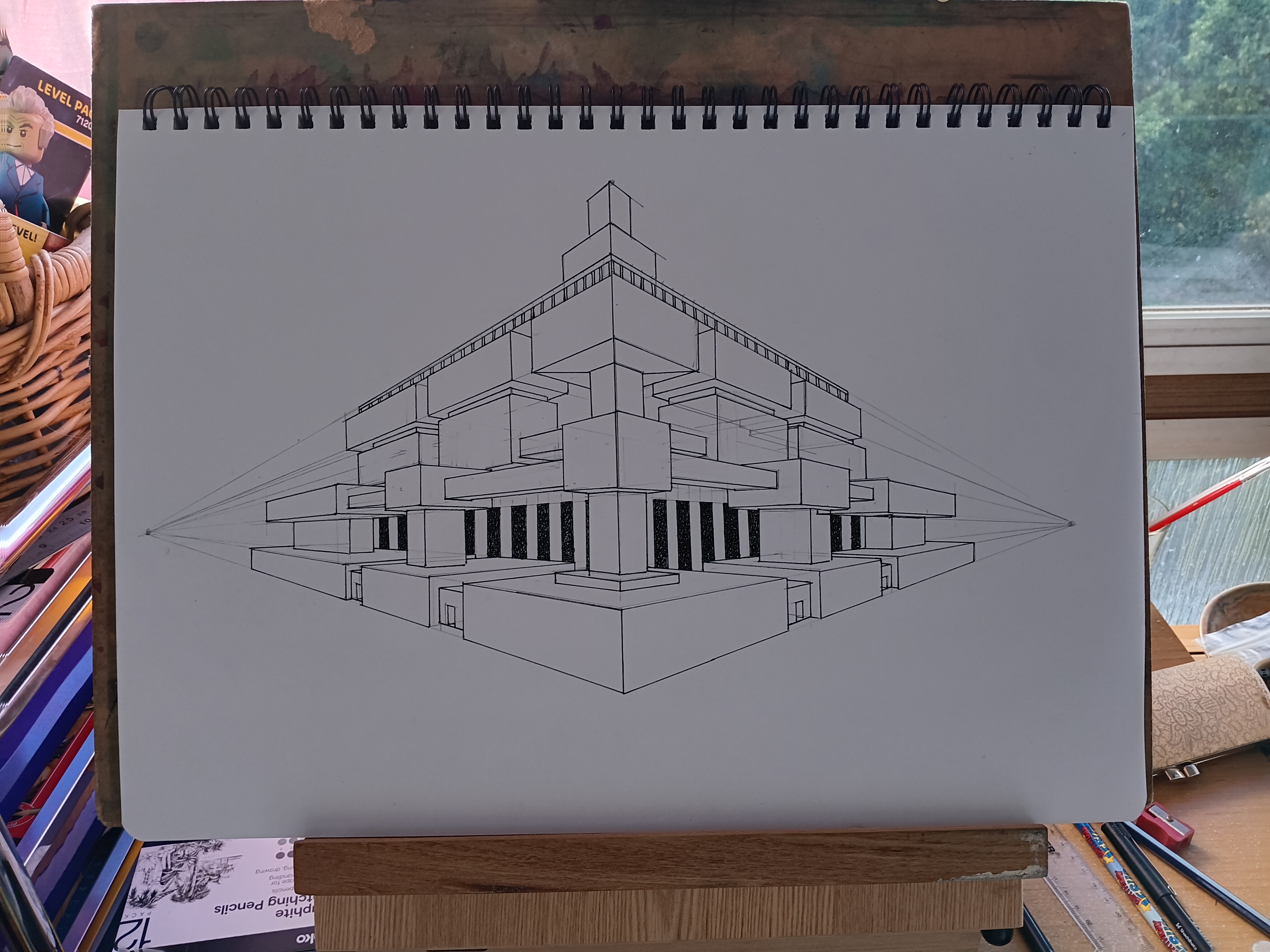 Probably not my best work, but it’s going in as the final image. It was more enjoyable than some of my other assignments (one was just…a very large rectangle. It was for practising measurement). And my art/sun room is slowly getting arranged into a more useful configuration.