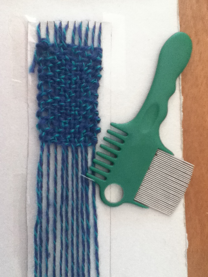 Biggest Boy’s – we needed something to push the weft closer together, but all I had was a nit comb…