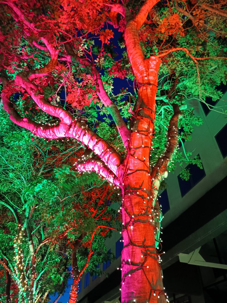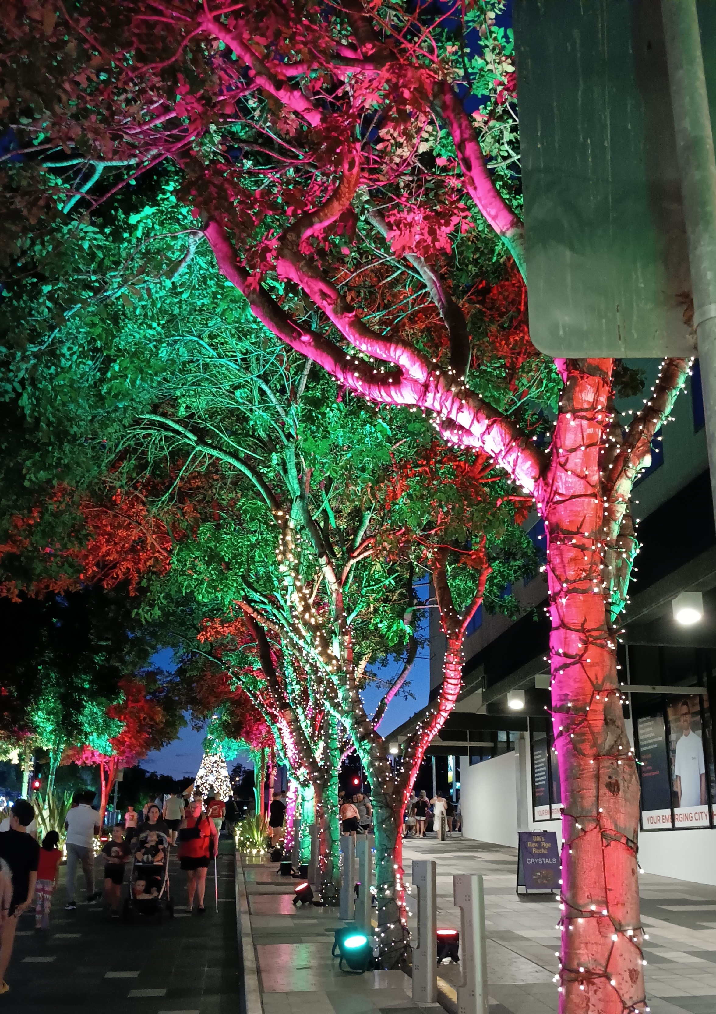 Another hot day, although the sort of heat that sneaks up on you by ramping up the humidity. Got some pressies wrapped and under the tree, and it feels like I’m getting a handle on things! I tried to take a photo of the tree lights shining on and through the ornaments…my hands aren’t as steady as they used to be. There are a lot of colourful, but blurry photos.
