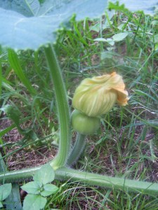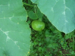 The pumpkin vine appears to be happy. I made a lovely soup from the last one we got from it.
