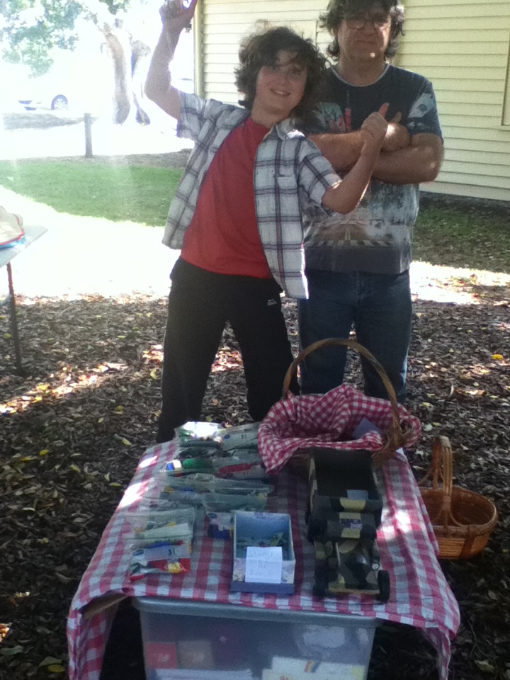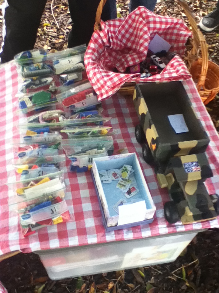 I’d seen the event listed, but didn’t really pay much attention… consequently we really only decided to go yesterday afternoon. Littlest Bean scrambled to get together some things, and ended up selling bags of Lego and old matchbox cars (he had stamps as well, but nobody bought those).