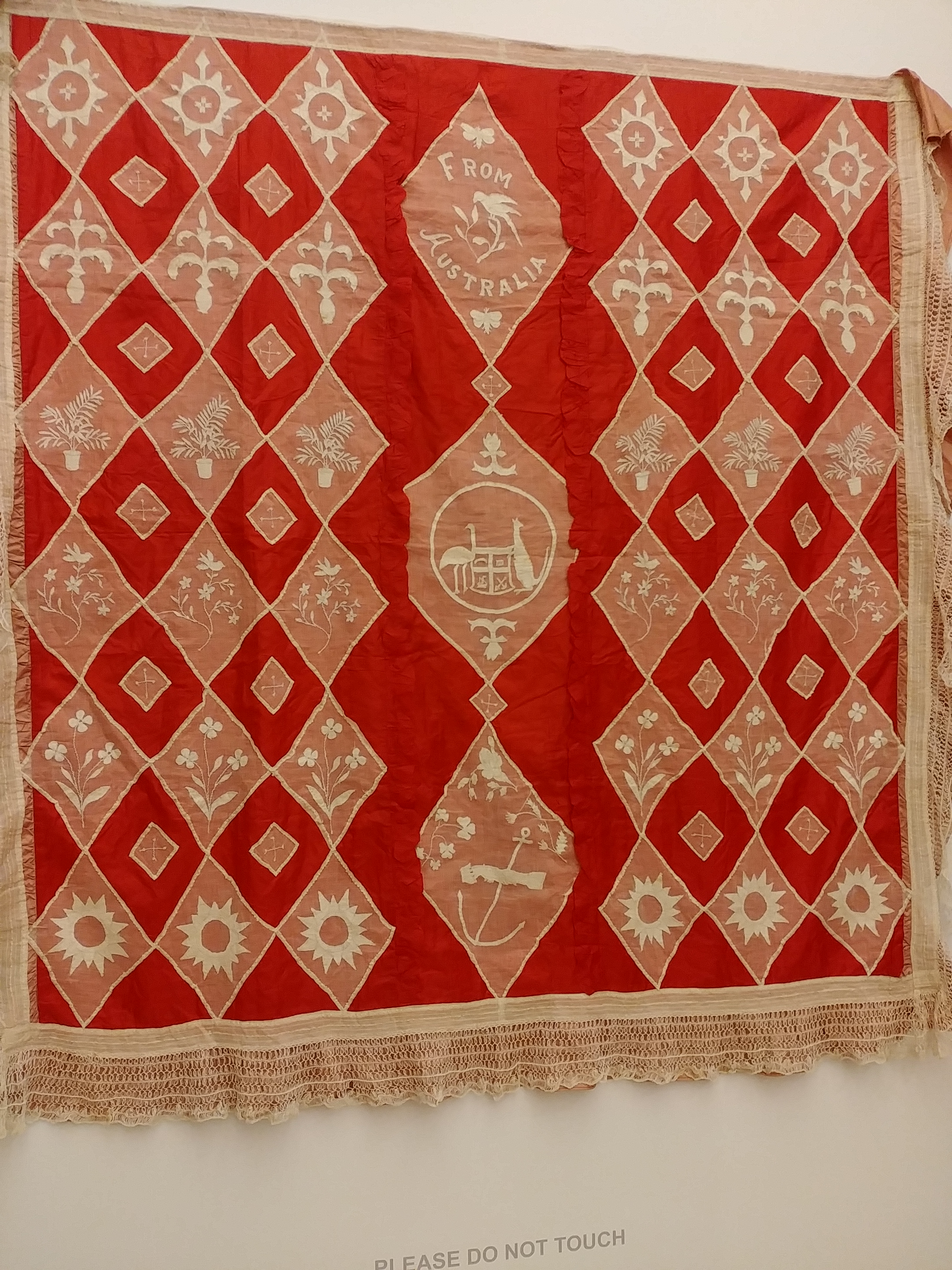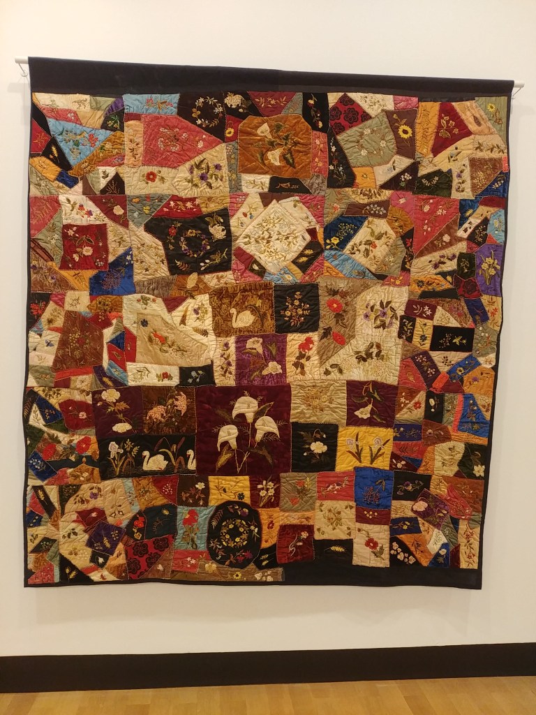 The last few weeks have seemed a bit plodding, with flashes of light in between… there’s been trips to the library, coffee at the cafe, and my Babe had his birthday a few days ago β€ I also had a look around the Art Gallery here. Haven’t been in a while, but I thought I’d have a look at the heritage quilts on display (they’re there until the end of the month). I’ve never really done any quilting, but I can appreciate the hard work that went in to them. There are the fancier quilts, whether for display or use –