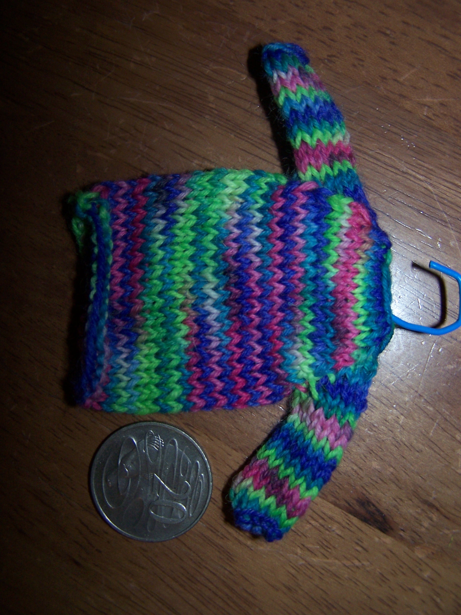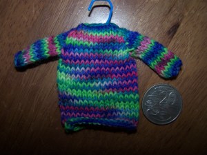 Before we left, Bel gave us some amazing little rainbow jumpers (or, possibly, mouse coats…) that she had made –