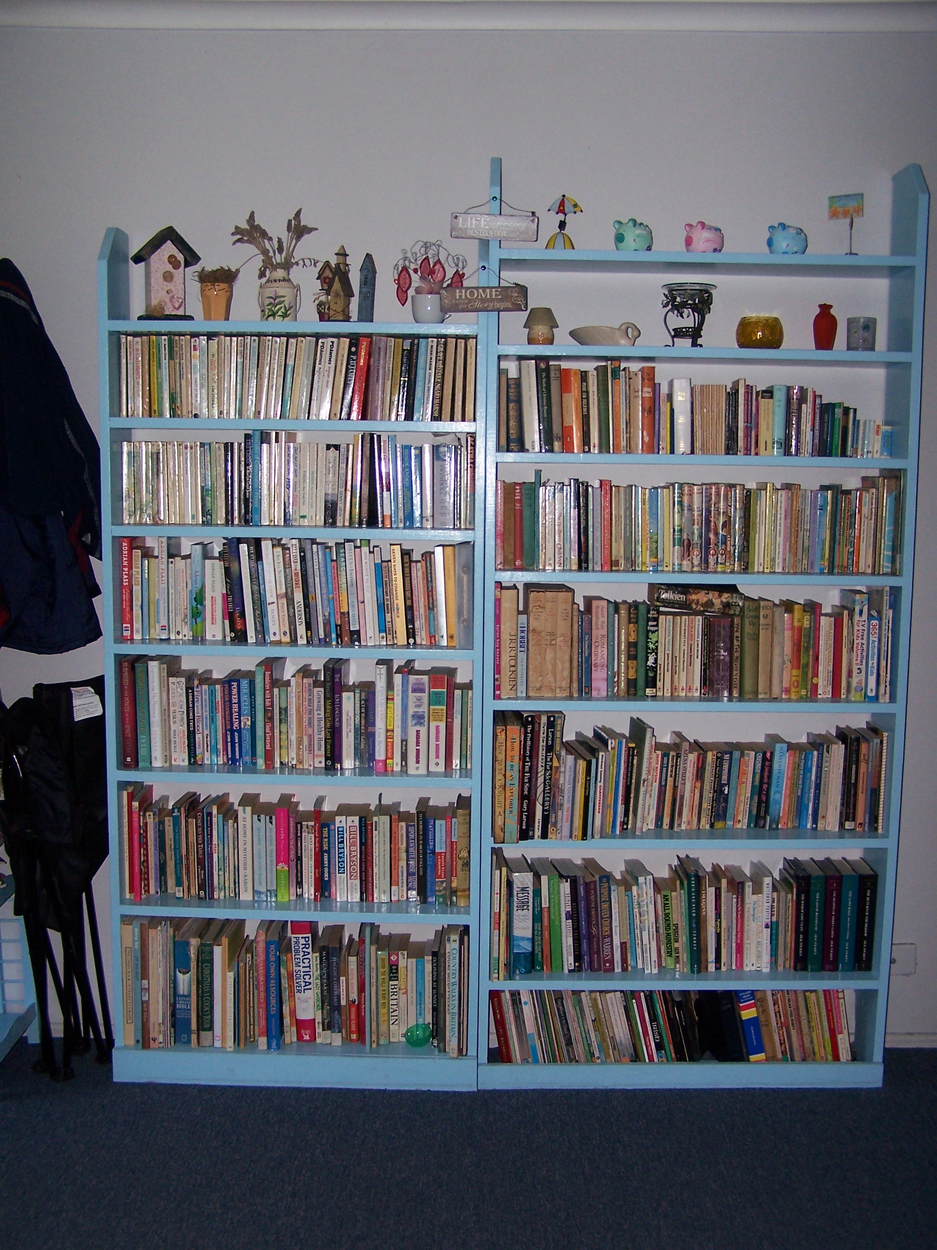 Here’s something I would find it hard to do without π I think of books as necessities, though! I do periodically go through my books, and give away any that we don’t need anymore. These two are our main bookcases. The rest of the house has smaller bookcases – two in our bedroom, one each in the boys’ rooms, and two (and a halfish) downstairs. Because of the cull last year, they are not all full at the moment. I’m sure they will be at some point.