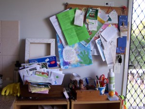 I went round the house today, checking out the “stuff” π I find that I mostly have momento type things now – bits of paper – old letters, birthday cards, travel momentos. I need to go through them to see what I can whittle down (Anyone have any ideas about what to do with the paper mountain? Apart from scrapbooking….)