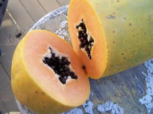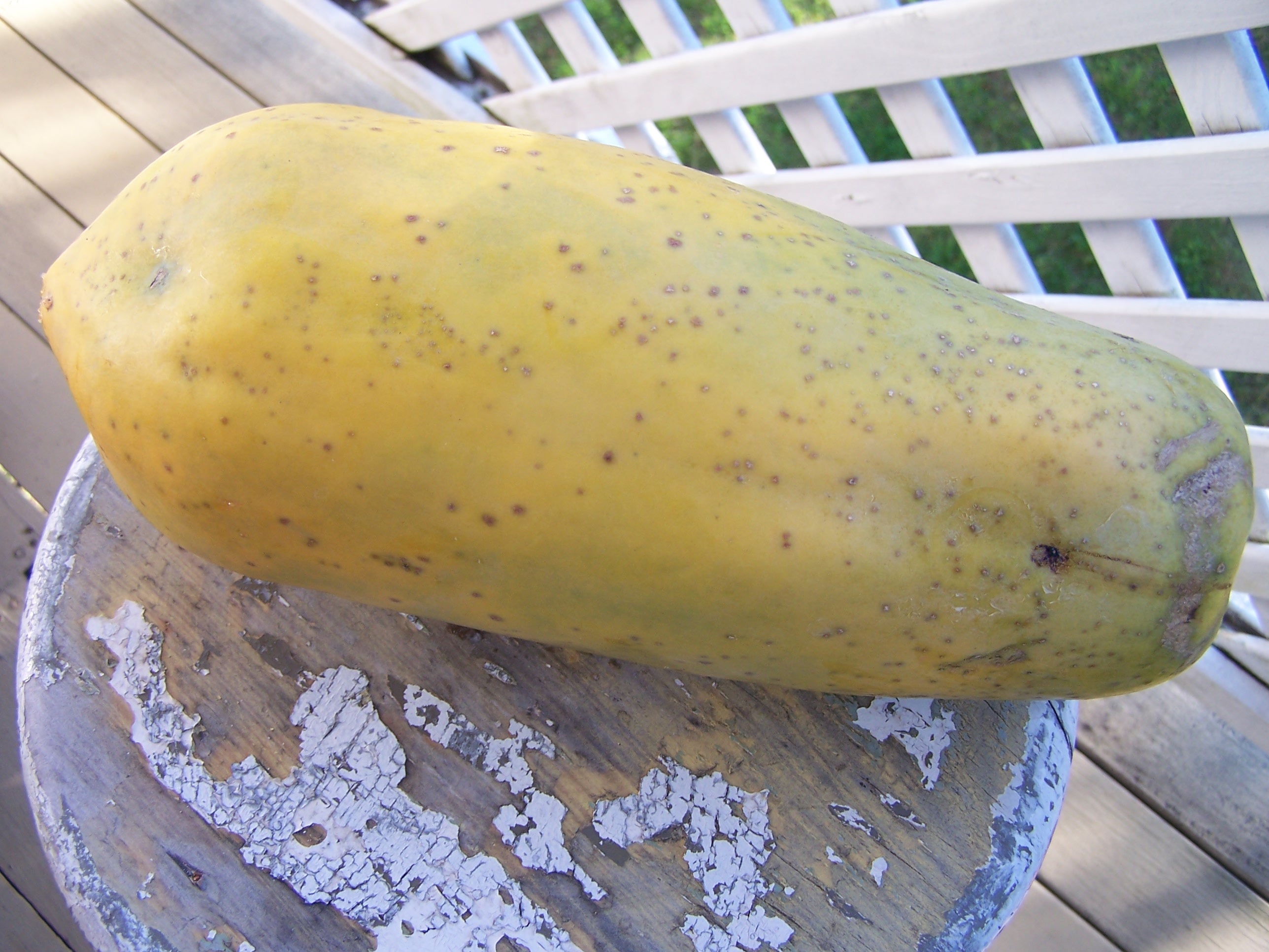 Finally, I have been able to harvest the first of our pawpaws…. this has been sitting on the verandah in the sun for three days… had to take it off a little bit early, to save it from being nibbled by snails…