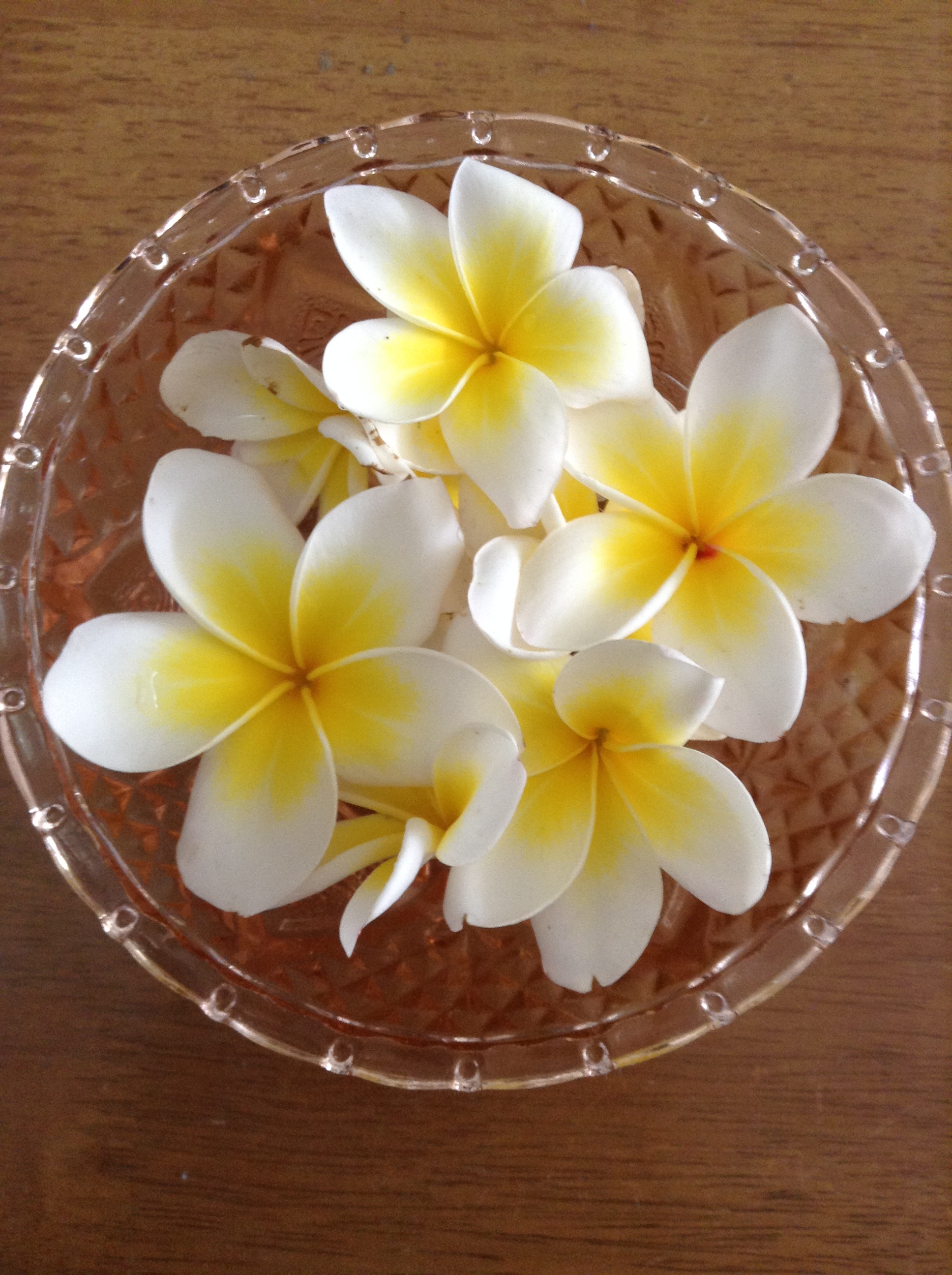 Here’s a bowl of frangipanis. Because the trees are still flowering. โค