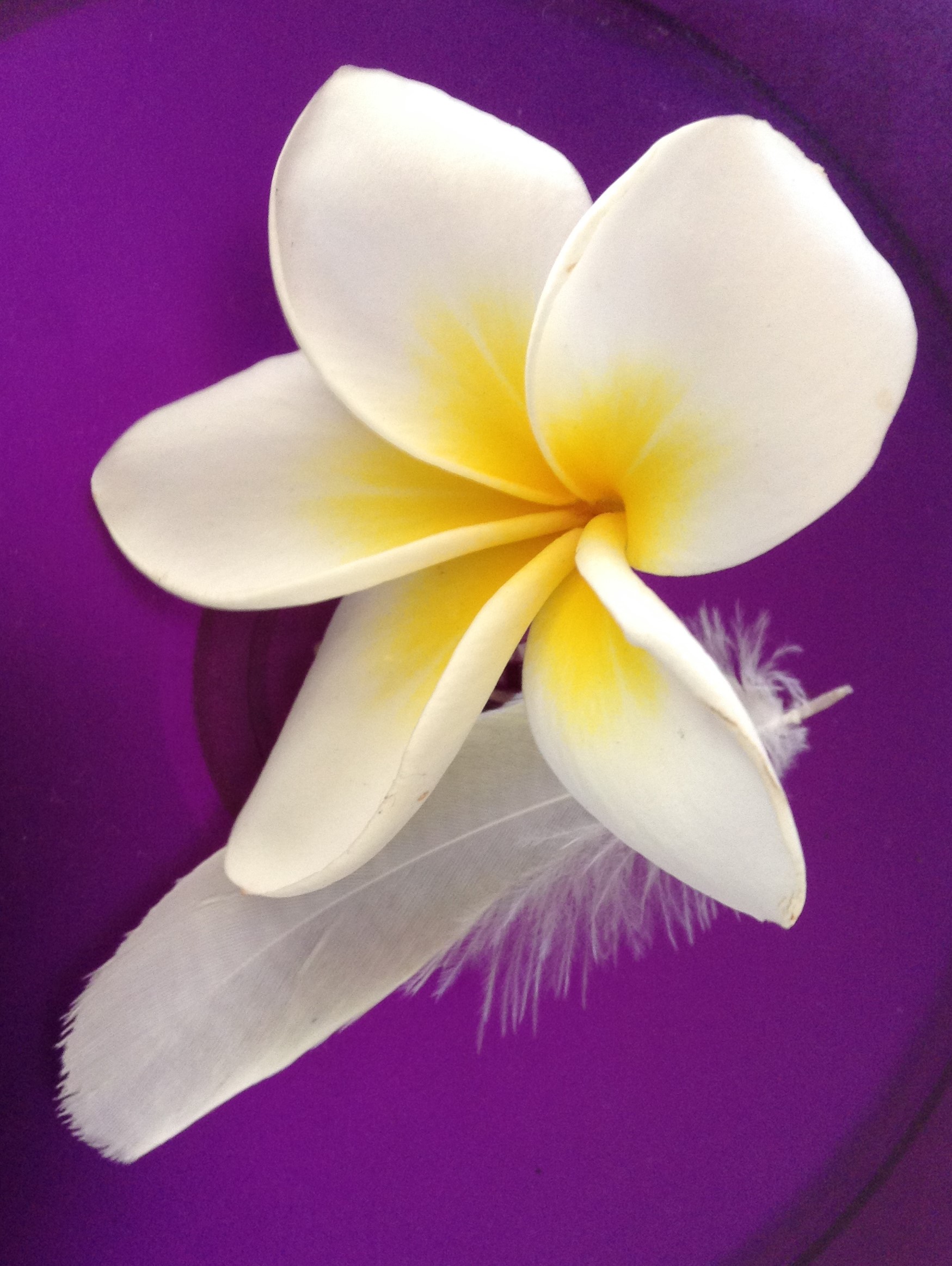 …and a single frangipani with a yellow-tinged feather!