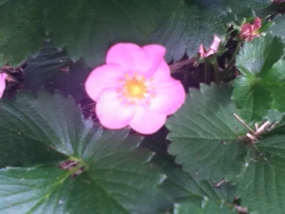 The strawberries have already yielded some fruit, from pretty pink flowers.