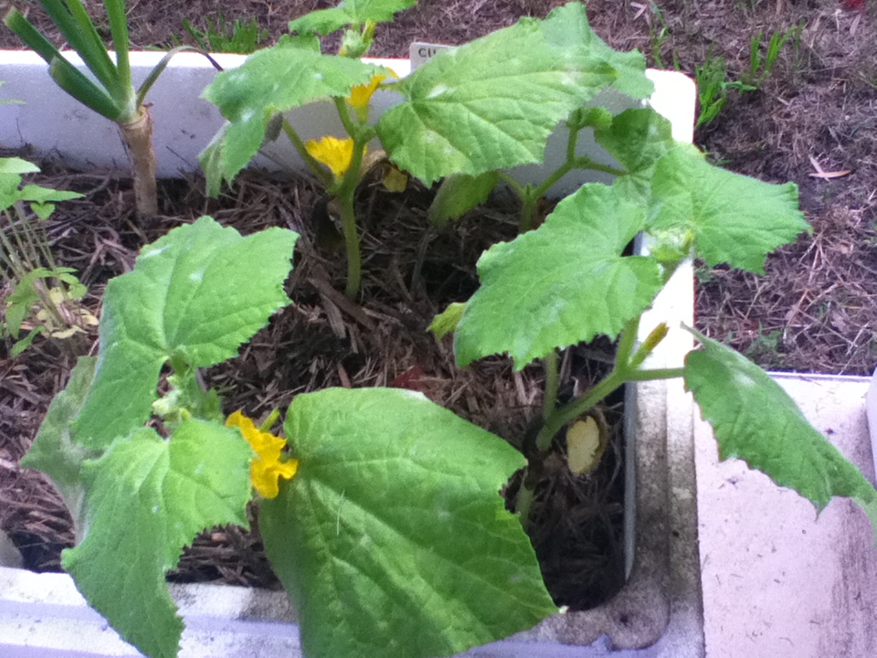 …and the snow peas and cucumbers are flowering well, with loads of tomatoes appearing all the time!