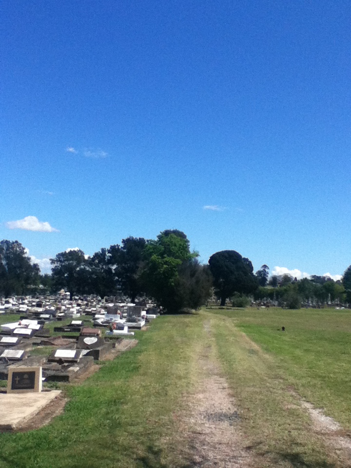 My walk takes me through the cemetery down the road – it’s quiet and still, and a great place to concentrate on what’s true and important. You know the dark hours, when it all seems too hard? We all get them. My day today was bright and cheery – things completed and a good outlook on the next lot of assessments, sunshine and warmth on my skin, feeling better than I have in a while…