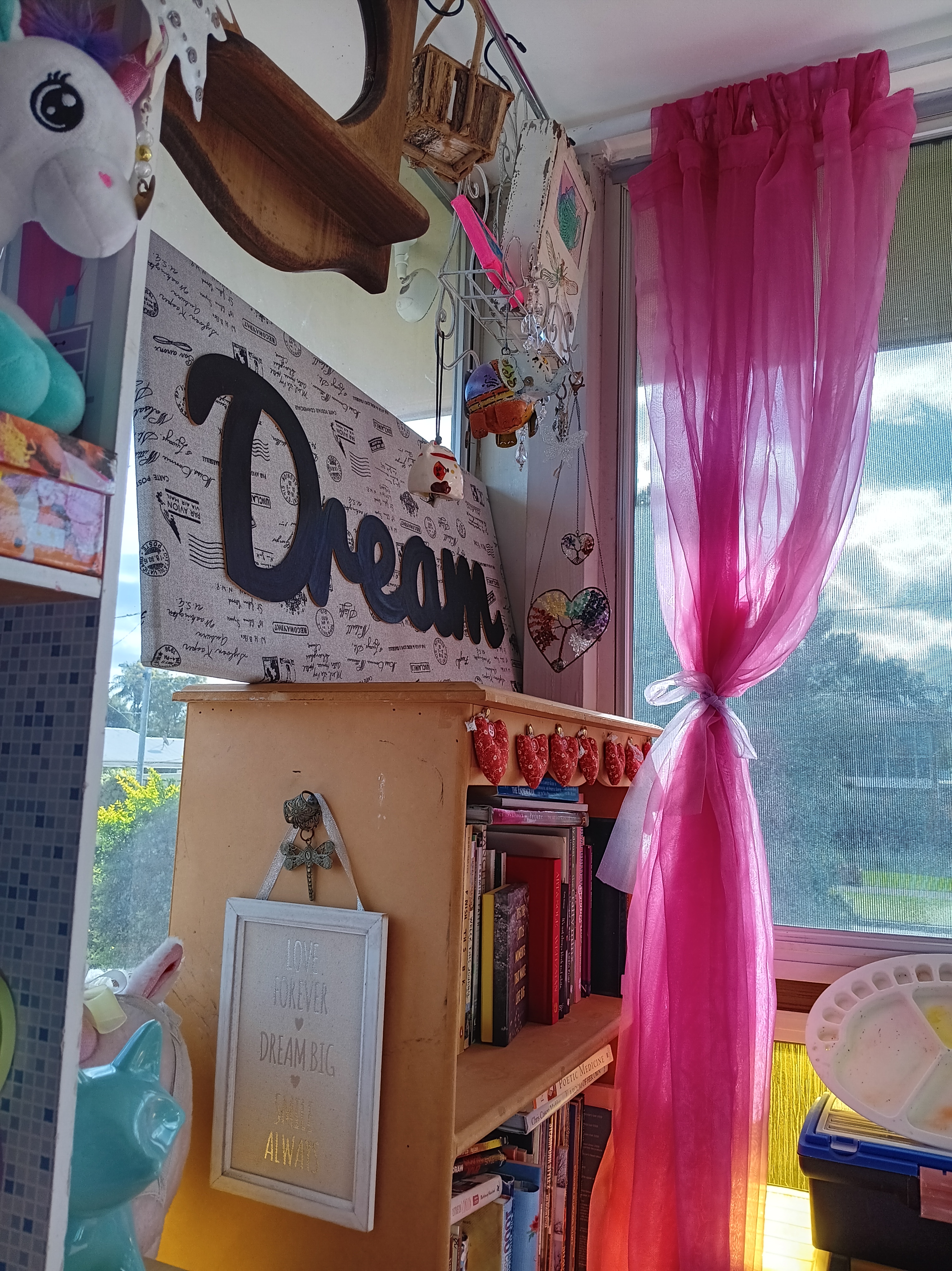 Anyway – I moved some bits around in the art room, and it feels brighter now. The bookcase that was in the middle of the outside wall is now next to the other bookcase, which means the front windows aren’t blocked now 🙂 There’s still a lot to do, but I’ll potter about this week.
