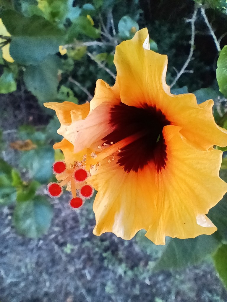 The hibiscus bush seems to be exploding at the moment. They’re very vibrant.