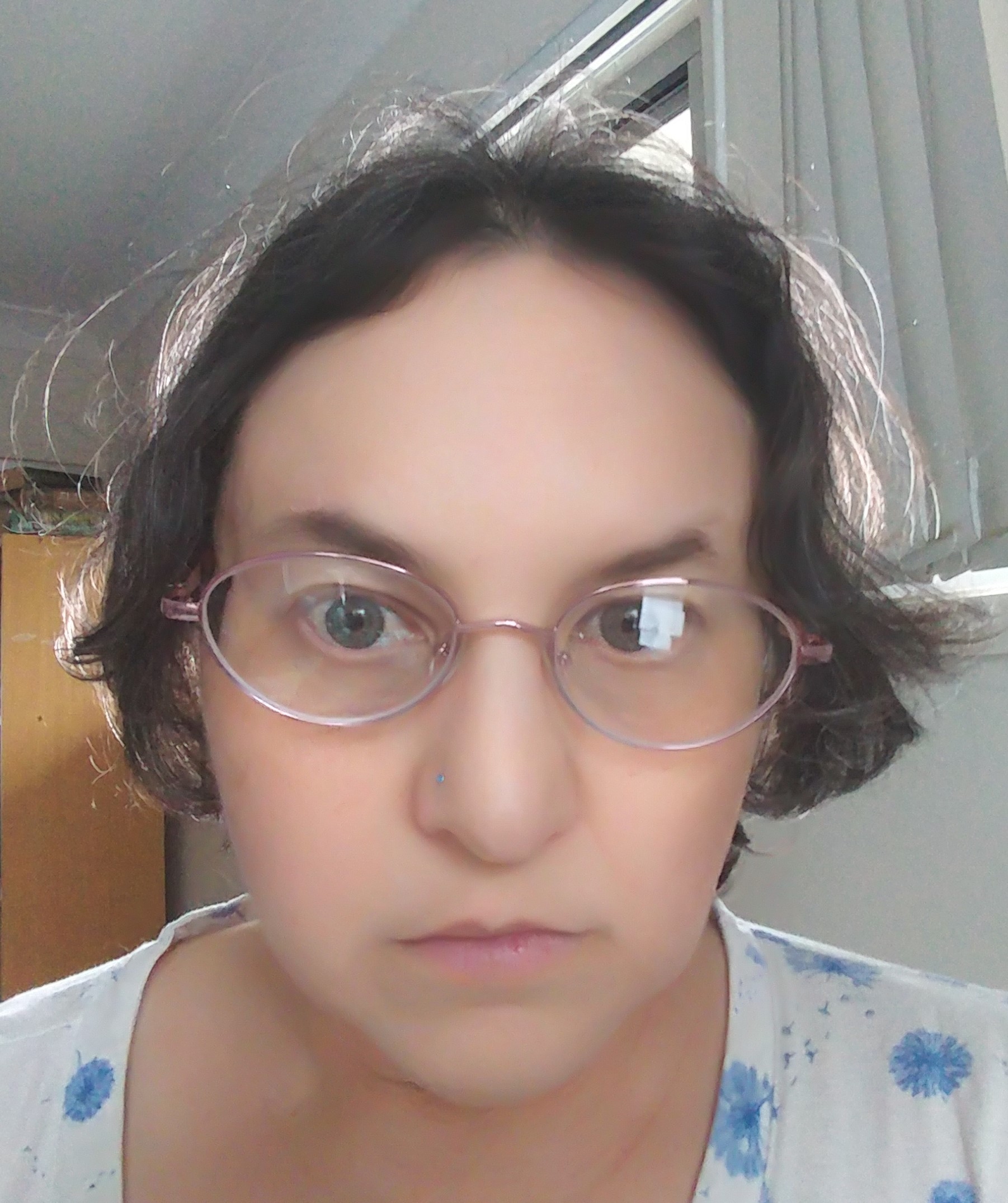 It’s been a good week – out for coffee and muffin, home to sort through boxes and other assorted packing… We managed to get through the cupboard under the stairs, which had been my main worry. It wasn’t as hard as I was expecting, and it was fun rediscovering things I’d forgotten or thought I’d lost. I’ve been more energetic this last week – I had a change in medication a few weeks ago, so perhaps it’s kicking in… I also got my new glasses, so I can see clearly now (although the rain hasn’t really gone!). Here I am in my new (pink) reading glasses.