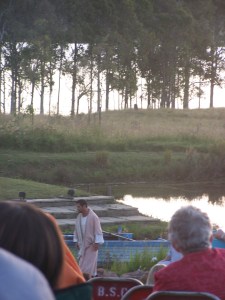There were as many as 2000 people there… a mass of humanity, mostly quiet, but occasionally there was talking through the dialogue, people moving about, children crying. The microphones didn’t work properly at times, and it was difficult to see some scenes. We started off feeling a bit irritated, but after a while, I thought of Jesus… sitting on a hill , with people chattering, moving about, generally being human.