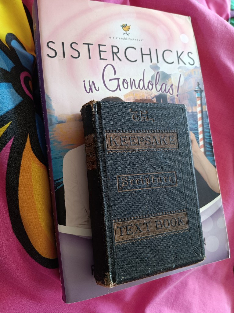 The Sisterchicks book is one I bought a few months ago. The book series involves women (friends) coming to some sort of crossroads in life, and working out where God wants them to go next. They always involve travel π This one is set in Venice. The two women are middle-aged, and looking back on their lives, in order to go forward.