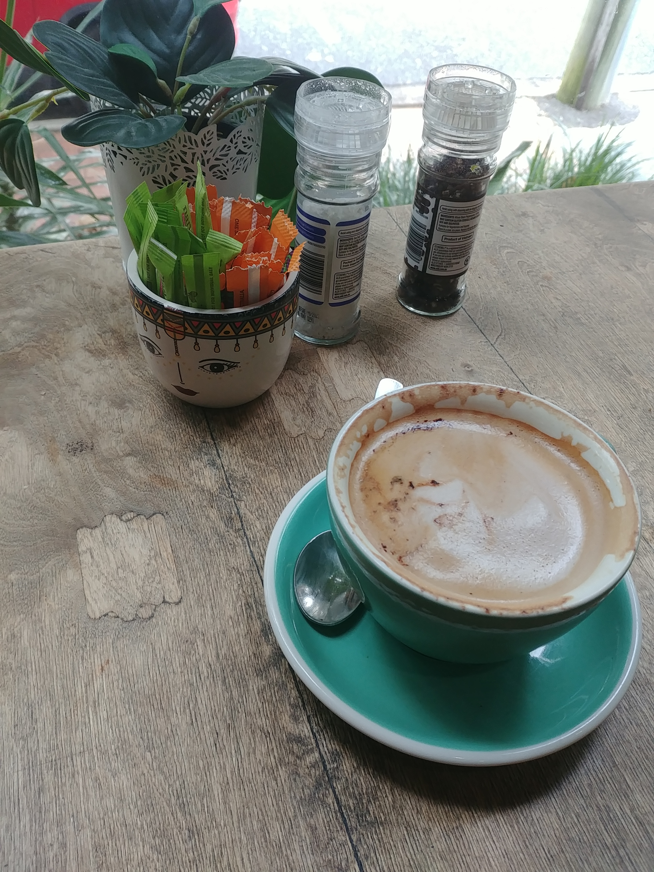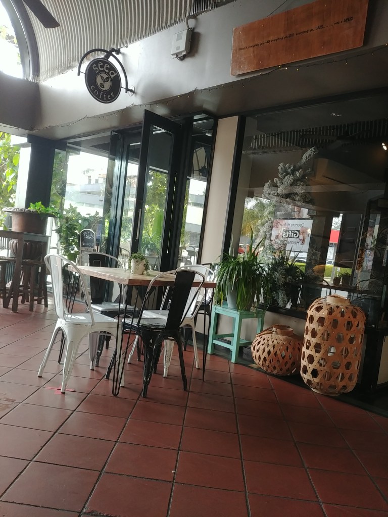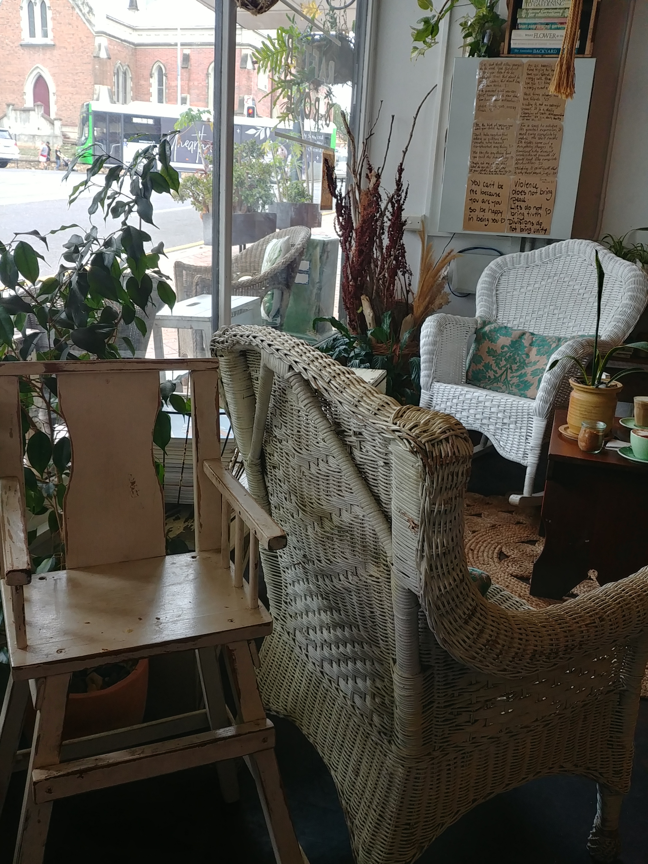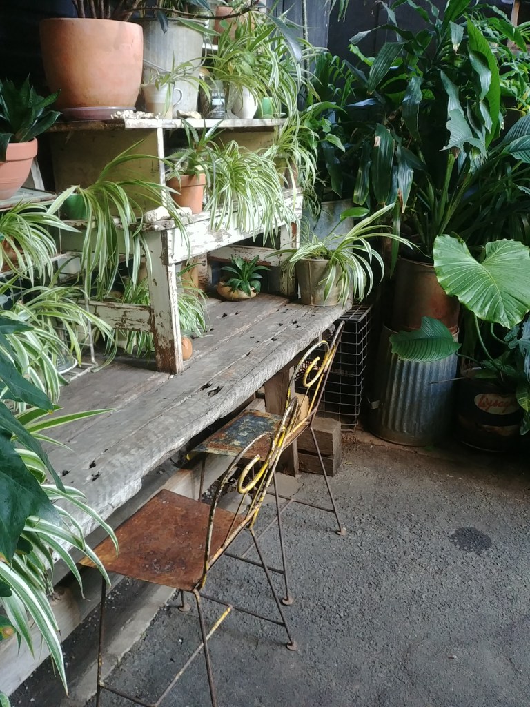 The cafe I go to has a lot of greenery, both inside and out. There’s lots of little “still life” areas – wherever you choose to sit is welcoming.