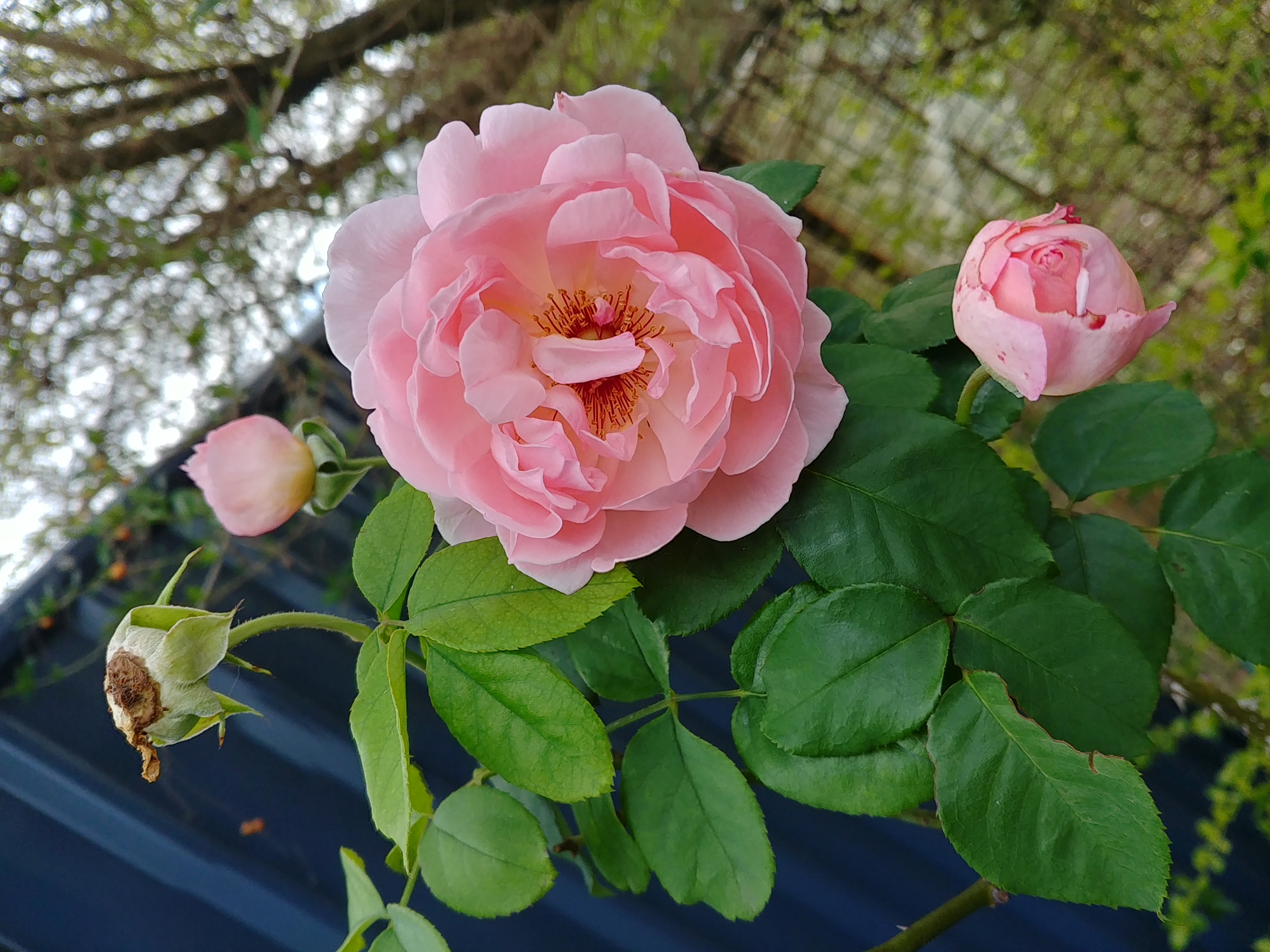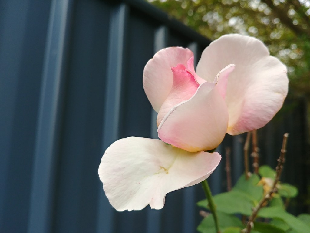 I’m not sure what it is, but I’m thinking something in the gourd family? I shall let it grow and see what happens. My rose bush is still throwing out flowers, seemingly from nowhere. I have so many photos I could bore you with. I’ll just choose some 🙂