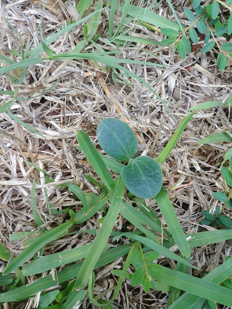 At least for a couple more minutes! We’ve had a few bucketloads of water dumped on us, but it seems to have disappeared now. The skies were brooding, and there was some spectacular lightning, but now it’s all sunset and light. Still, the rain we have had has made the grass shoot up a bit. Also this –