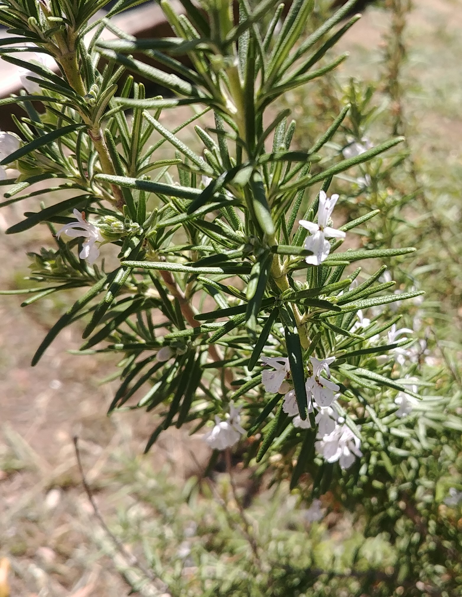 My lavender is flowering beautifully, for the first time, I think. The rosemary also has lovely pale blue flowers.