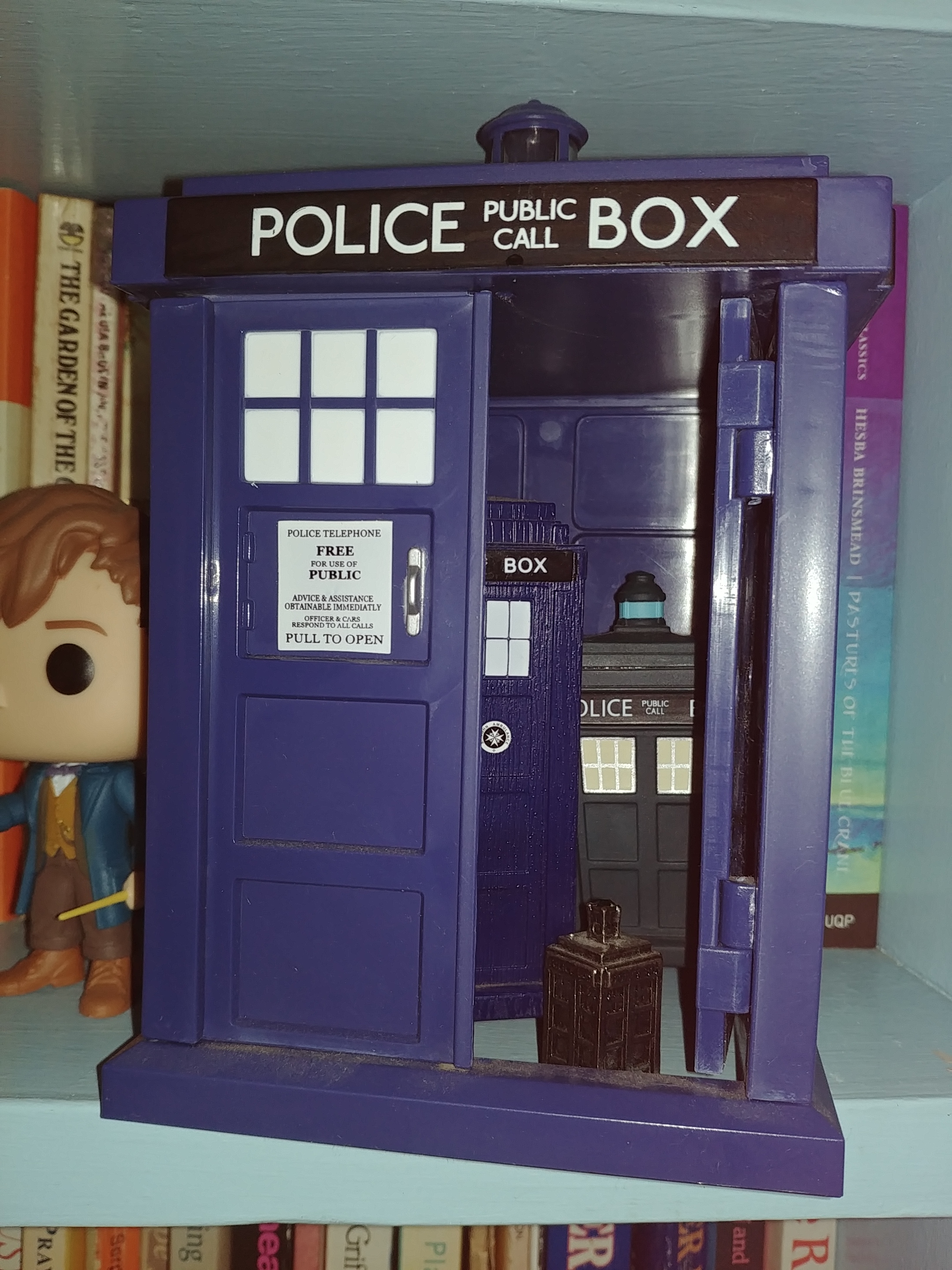 Part of my packing strategy involves using as much “dead” space as I can – anything with any space to spare gets something shoved into it! This included all my Tardises (Tardisi?) at one point. At least one of them seems bigger on the inside!